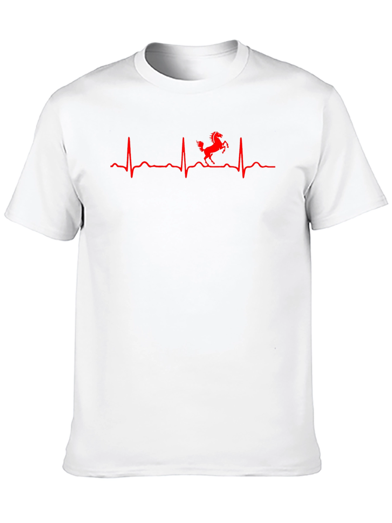 Show your passion with this unique black t-shirt featuring a bold red heartbeat design. The design cleverly incorporates the iconic Ferrari prancing horse into the heartbeat line, making it a must-have for car enthusiasts. Made from a comfortable fabric blend, this tee offers a relaxed fit perfect for everyday wear. Whether you're at a car show, running errands, or just relaxing at home, this shirt is a great way to display your interests. The eye-catching design is sure to spark conversations and turn heads. Add this stylish and expressive t-shirt to your wardrobe today!