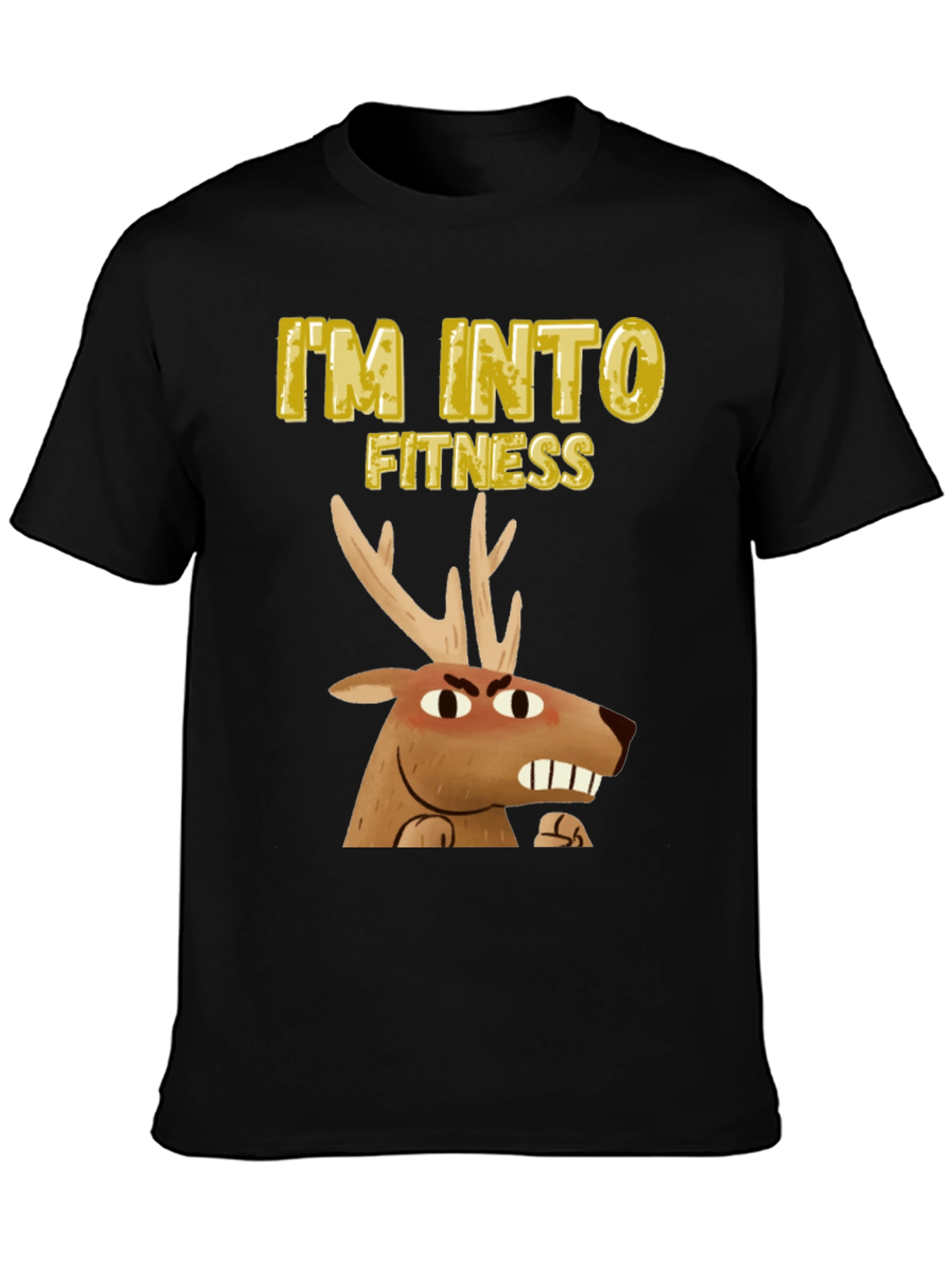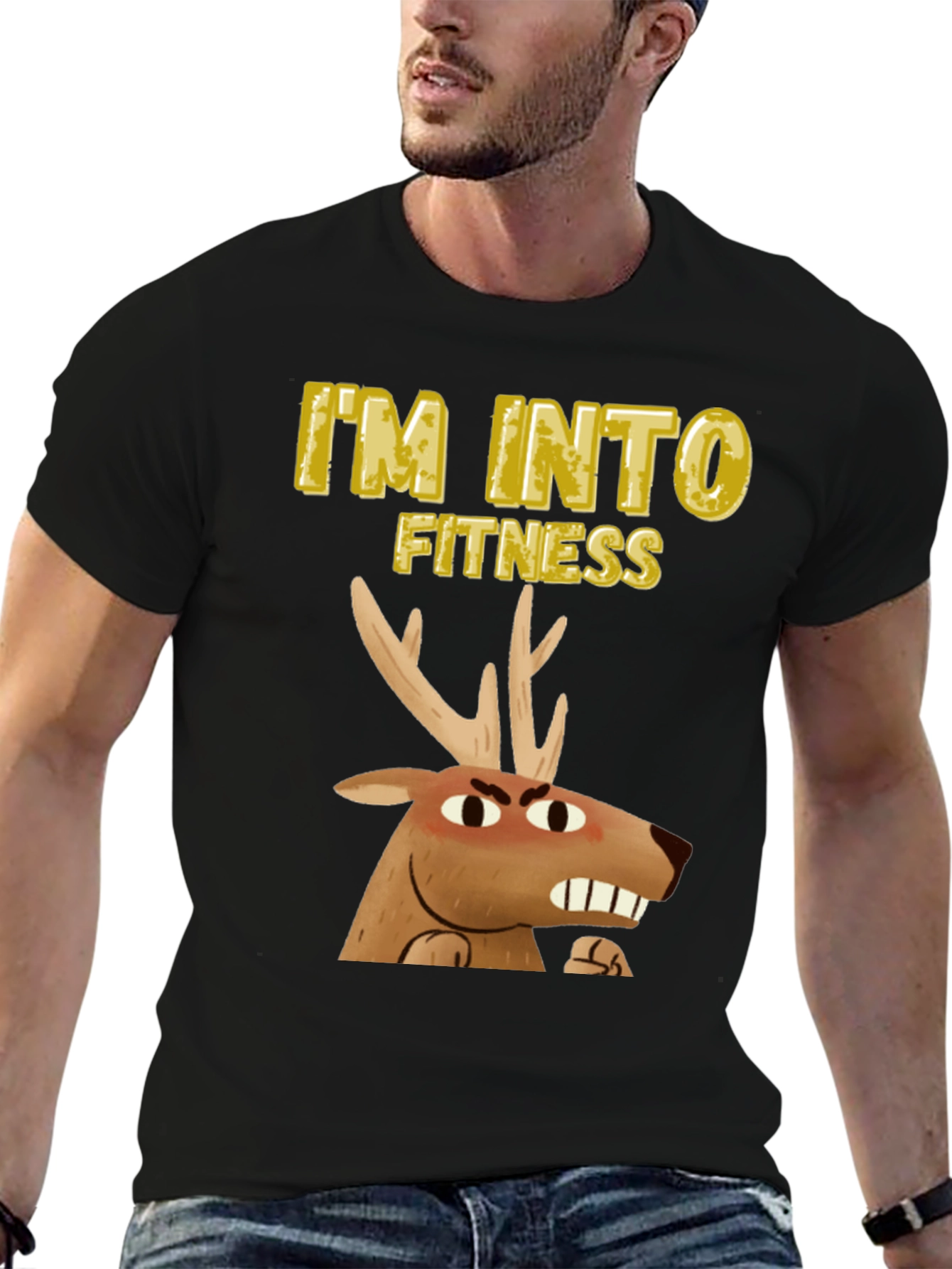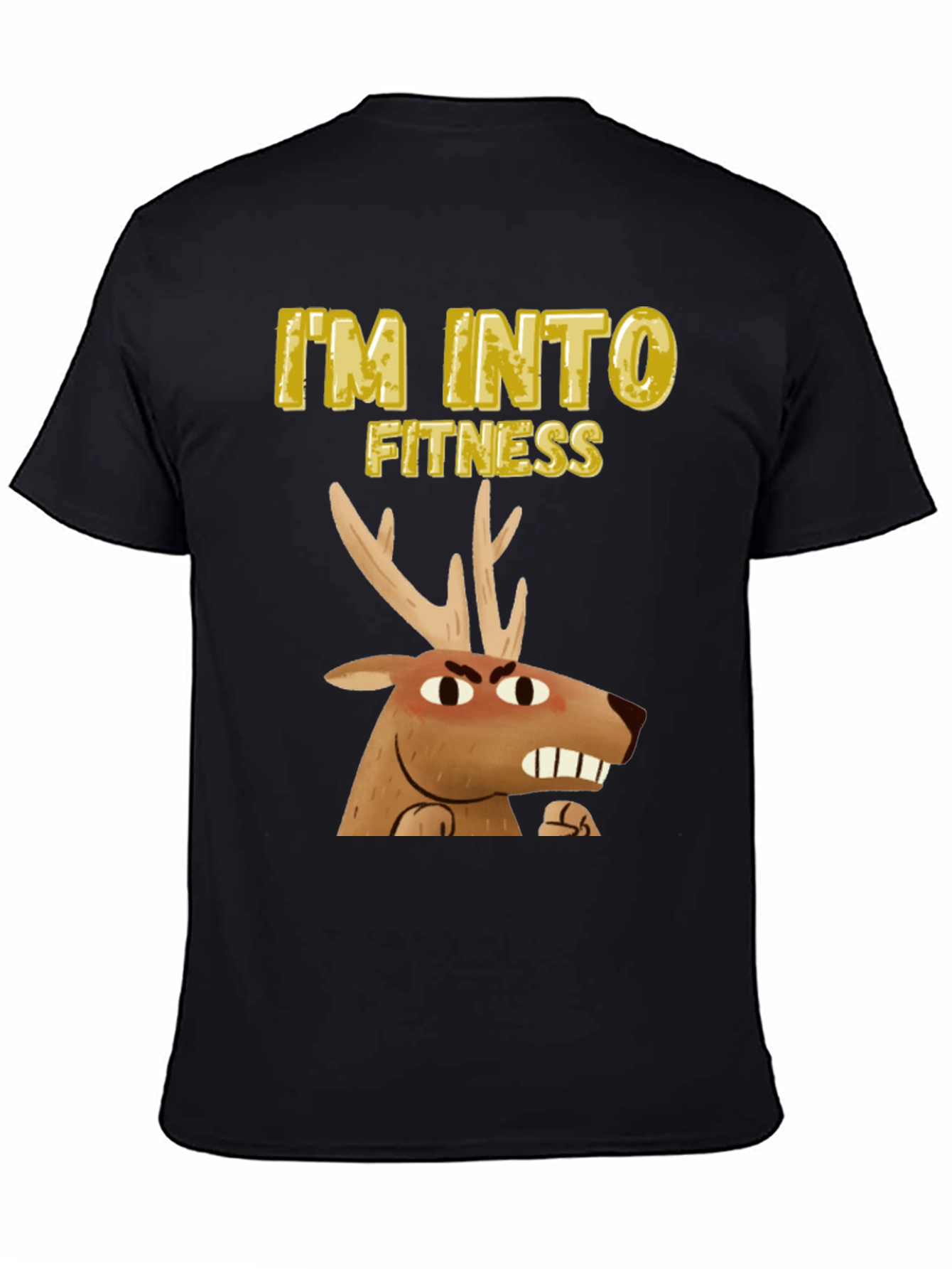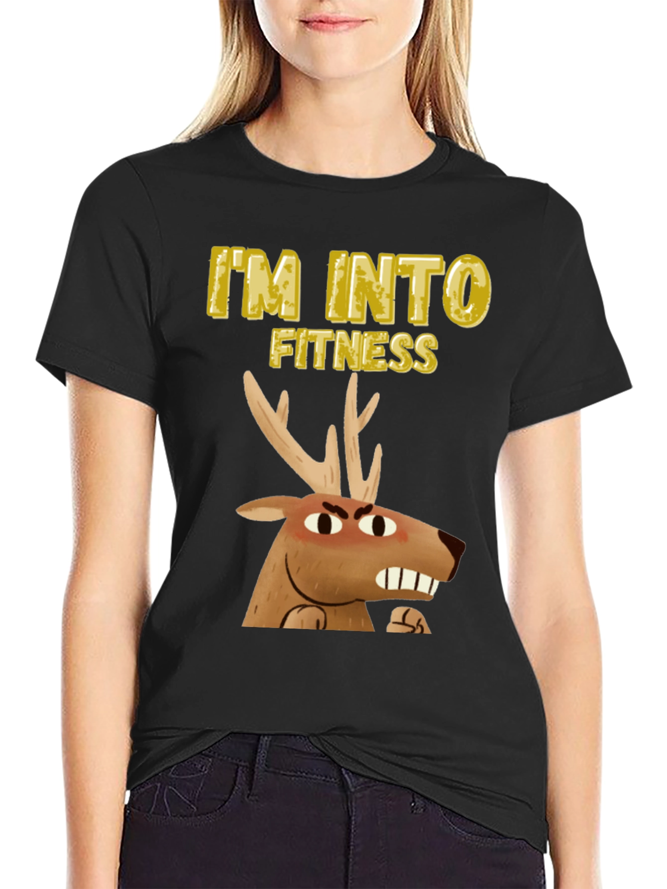 Show off your quirky side with this black "I'm Into Fitness" t-shirt. The shirt features a humorous graphic of an angry-looking deer flexing its muscles, adding a playful touch to your wardrobe. Made from a comfortable, breathable fabric, this tee is perfect for casual wear, gym sessions, or just lounging around. The bold gold lettering and detailed deer illustration make it a unique conversation starter. A must-have for animal lovers and fitness enthusiasts alike!