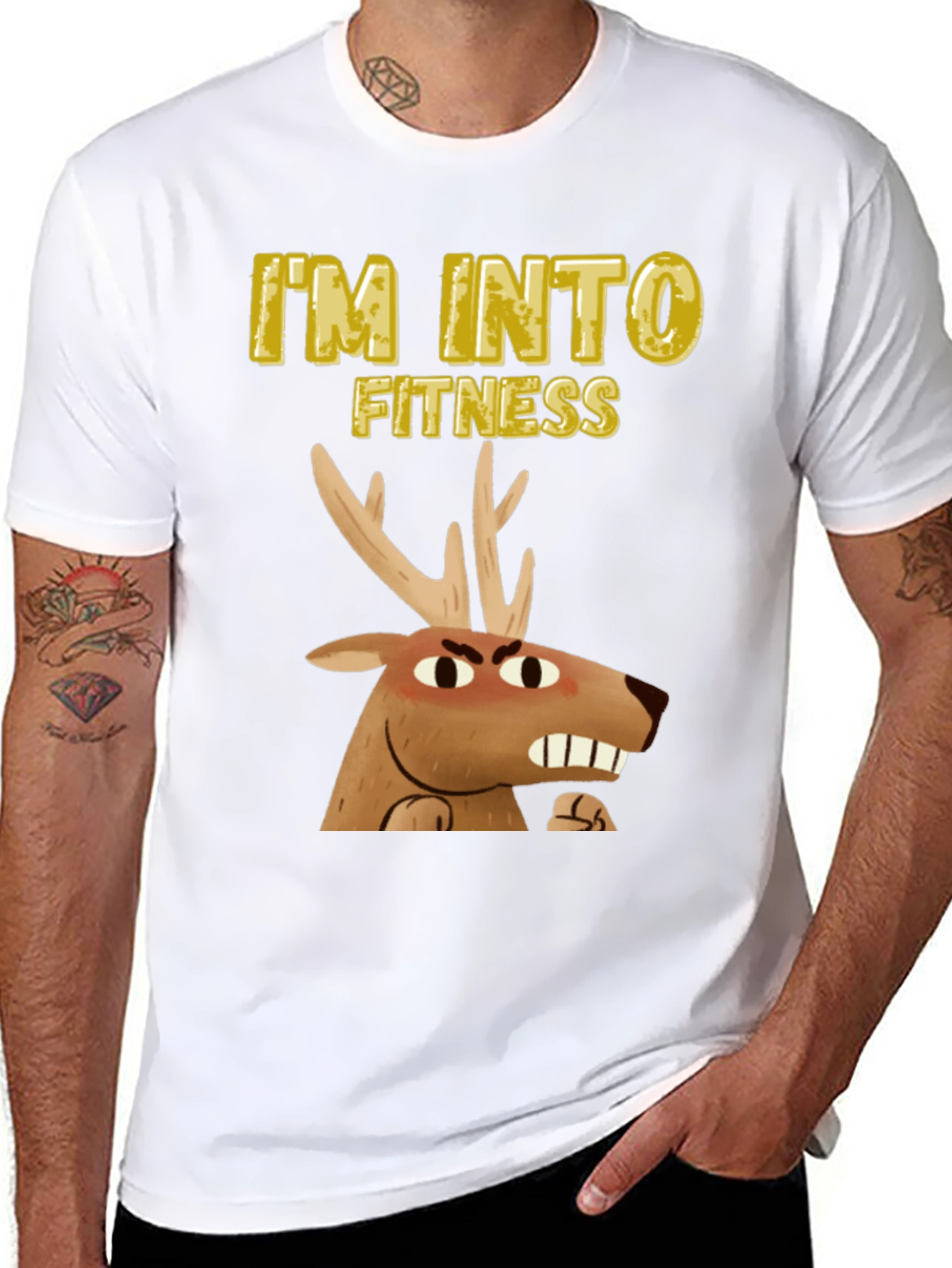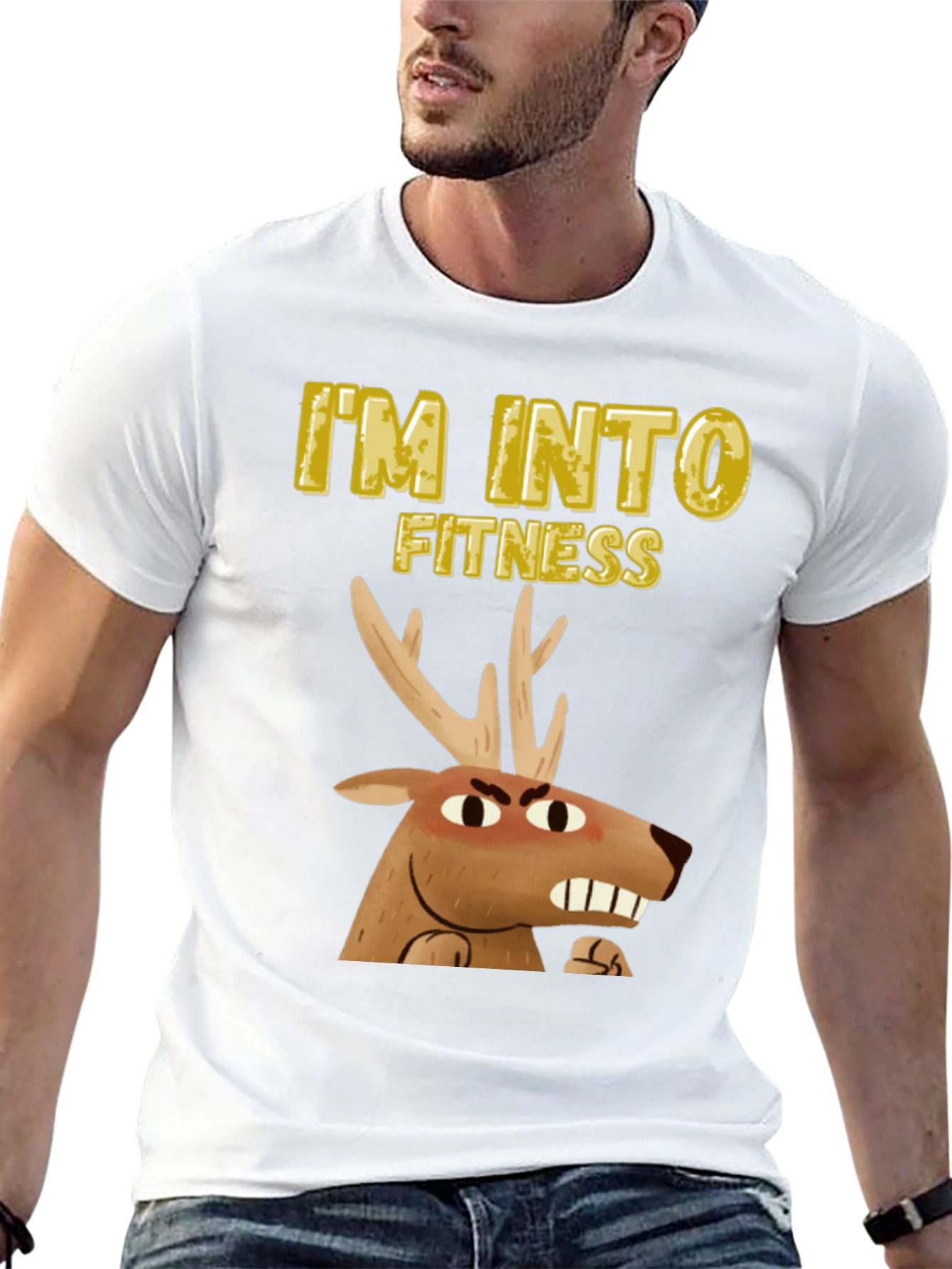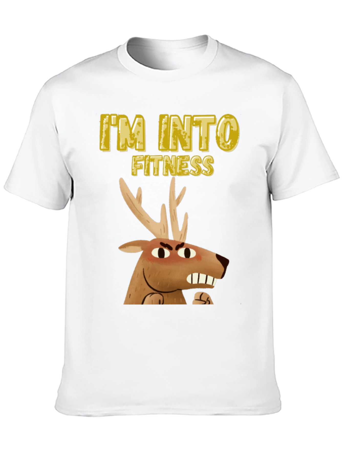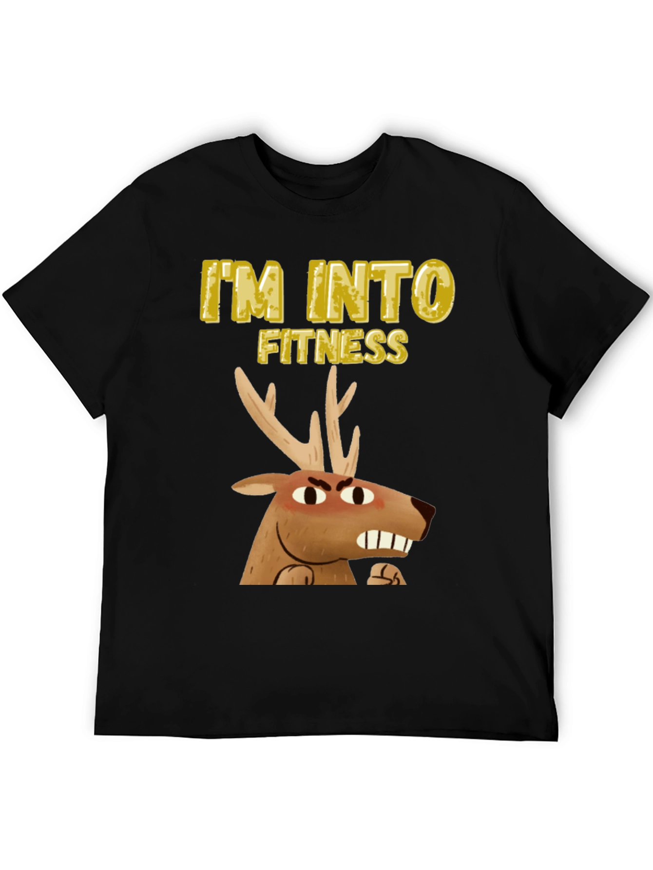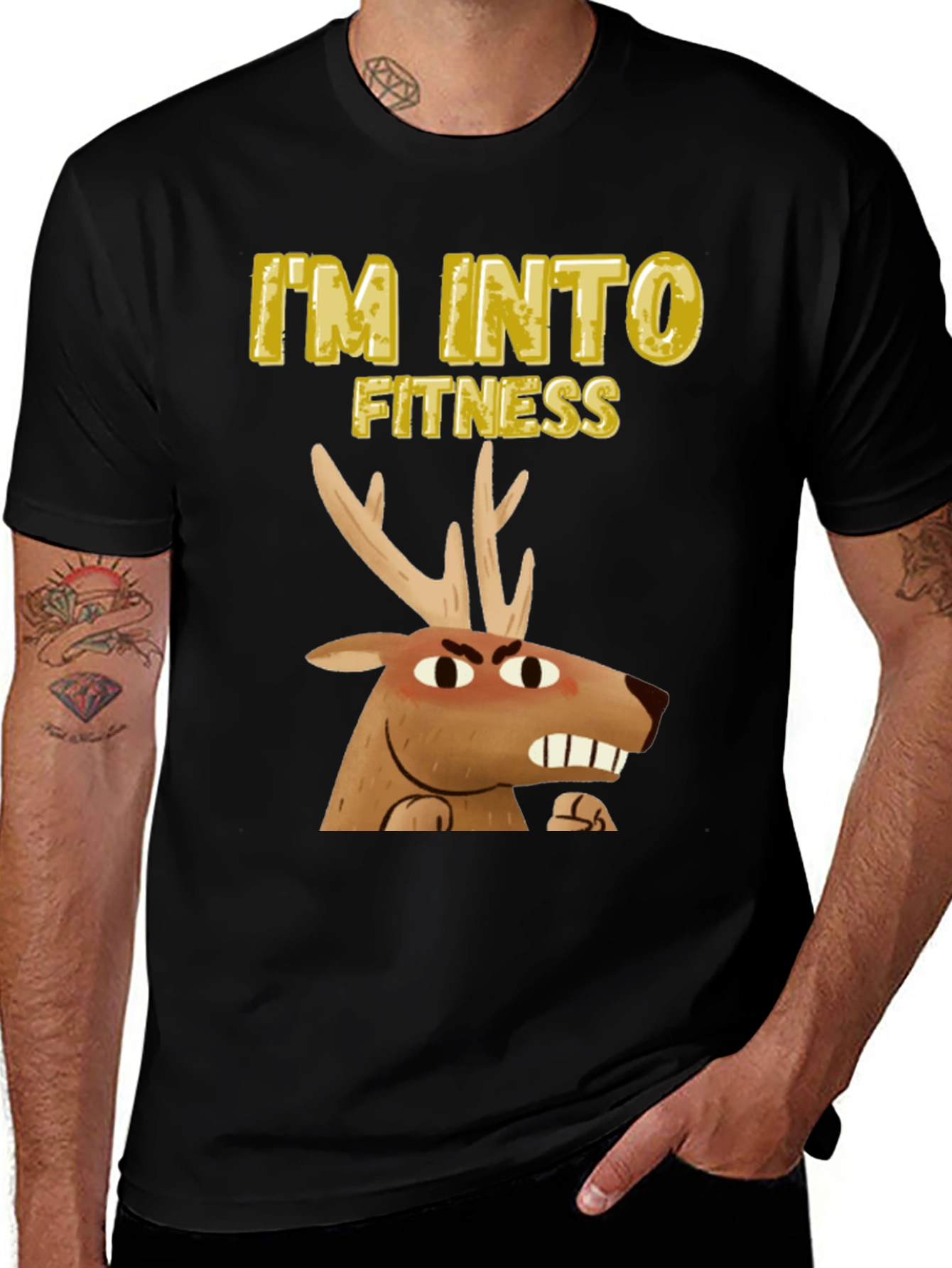 Show off your quirky side with this black "I'm Into Fitness" t-shirt. The shirt features a humorous graphic of an angry-looking deer flexing its muscles, adding a playful touch to your wardrobe. Made from a comfortable, breathable fabric, this tee is perfect for casual wear, gym sessions, or just lounging around. The bold gold lettering and detailed deer illustration make it a unique conversation starter. A must-have for animal lovers and fitness enthusiasts alike!